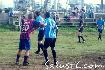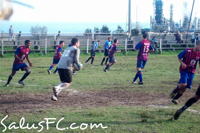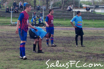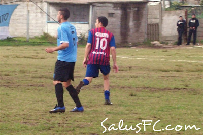 Fuimos sorprendidos a los 5 minutos con un gol que modifico todos los planes y estrategias del cuerpo técnico. Y peor aún cuando a los 33 minutos recibimos el segundo gol. Sin chances de poder concretar en gol los ataques Azulgranas, por causas de errores en la definición o en el último pase no permitieron a Salus poder empatar durante el primer tiempo. Todo lo contrario ocurria en Uruguay Montevideo.