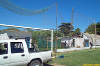 El sabado pasado detras de uno de los arcos del Parque Salus se coloco la red de contención, que permitira que no se extravien más pelotas ya sea en prácticas o en partidos oficiales, como habitualmente ocurria, teniendo que ir a buscar los balones al jardín de los vecinos.
